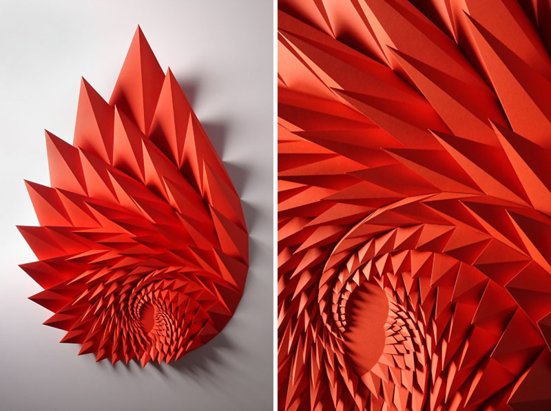 مهندس آمریکایی Matt Shlian، مجموعه مجسمه‌هایی را ساخته که در آن از کاغذ برای ساخت آثار هنری استفاده می‌شود و تقریبا به نظر می رسد که کاغذ‌ها در حال حرکت هستند.