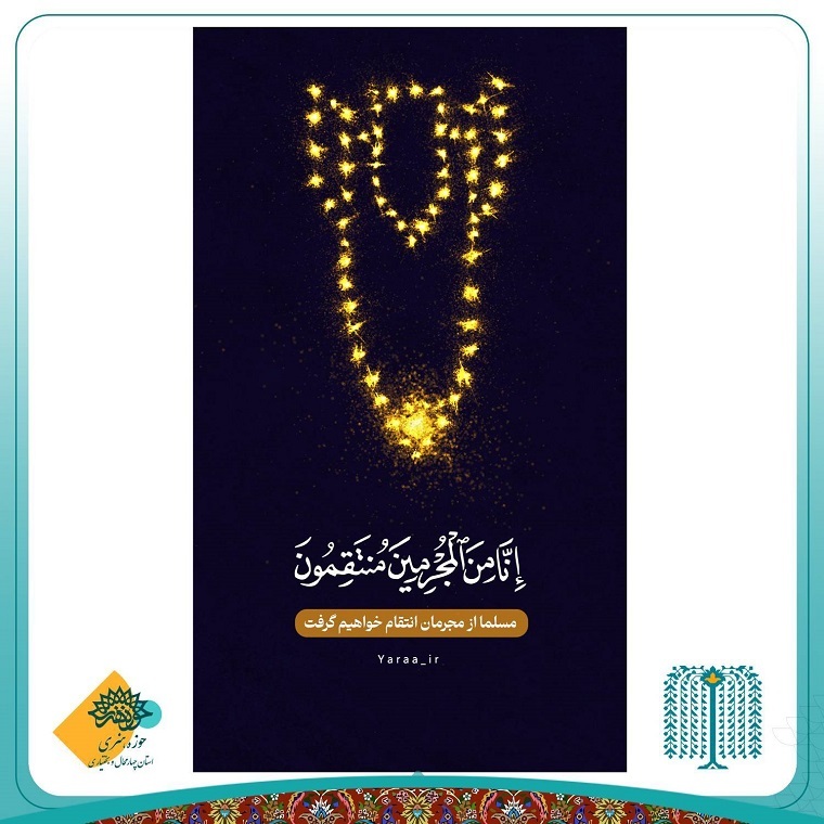 به گزارش روابط عمومی حوزه هنری چهارمحال و بختیاری، در پی جنایتهای وحشیانه رژیم غاصب اسرائیل و شهادت سرداران اسلام و تعدادی از هموطنان عزیزمان، هنرمندان تجسمی حوزه هنری استان چهارمحال و بختیاری با قلبهایی سرشار از انزجار و همبستگی، از صبح روز ۲۳ خرداد دست به خلق پوسترهای گرافیکی نمادین زدند تا اقتدار ایران اسلامی و ملت ایران، نقش استکبار جهانی و صهیونیسم در حمایت از تروریسم و جنایت علیه بشریت، و همچنین اعلام نابودی این رژیم غاصب را نشان یا آثار هنری خود نمایش دهند.