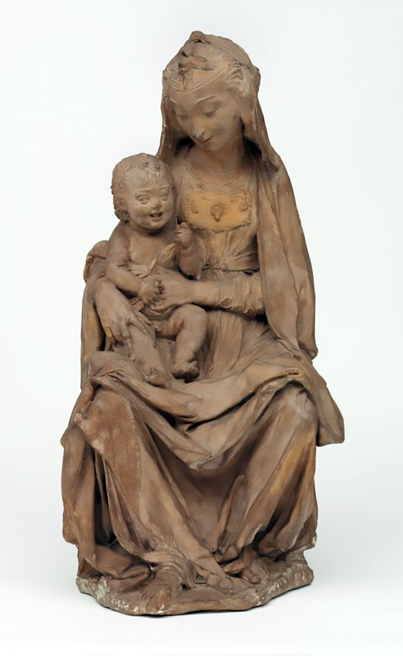 به گزارش روابط عمومی مرکز تجسمی حوزه هنری، «فرانسسکو کاگلیوتی» استاد تاریخ هنر در دانشگاه «فدریکو دوم ناپل»، این مجسمه از چهره مریم مقدس و کودکی خندان را که به موزه «ویکتوریا و آلبرت» در لندن تعلق دارد، به داوینچی نسبت داده است.