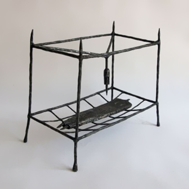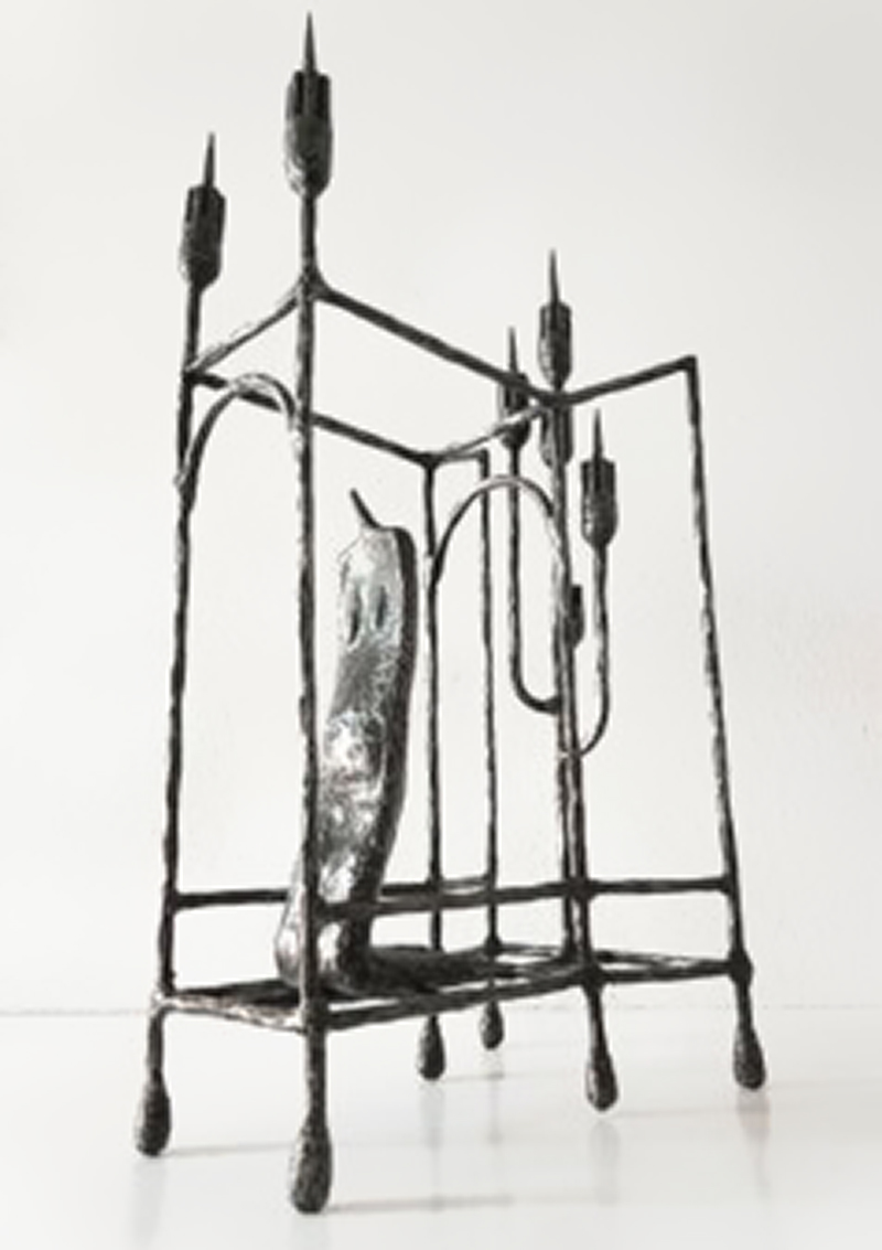 یکی از نکات جالب و مشترک در کلیه کارها این است که یک میلهی فلزی شاید شبیه به شمعدانی و یا مشعل در آنها دیده میشود. این بخش از کارها گاهی در حکم یک شمعدانی است، گاهی بخشی از تخت شیرین و یک جا بخشی از آرامگاه فرهاد است. حتی در «مرگ شیرین یک» میتوان گفت که این فلز در خیال شیرین همانند یک آلت قتاله برای مرگ او عمل میکند. ولی در «مرگ شیرین دو» که گویی شیرین برای همیشه آرمیده است این میله تنها در پایین تخت شیرین قابل رؤیت است. هنرمند درباره این امر میگوید: «این ویژگی از دل ساخت آثار درآمده و هدف خاصی از این کار نداشتهام. درواقع الگوی خاصی برای این کار نداشتهام.»