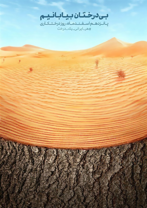 این پوستر با شعار «هر ایرانی یک درخت» طراحی و اجرا شده است.