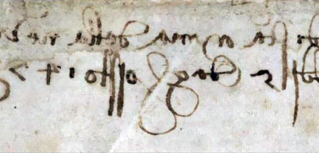 بررسیهای انجام شده نشان میدهند هر دو این جملات توسط «داوینچی» نوشته شدهاند و این امر نشانگر آن است که او قادر بود از هر دو دست خود به خوبی برای نوشتن استفاده کند.