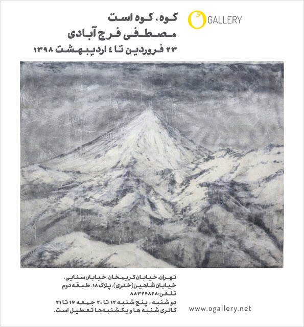 مجموعه آثار مصطفی فرج‌آبادی با عنوان «کوه، کوه است» از روز جمعه ۲۳ فروردین ماه در گالری اُ افتتاح می‌شود.