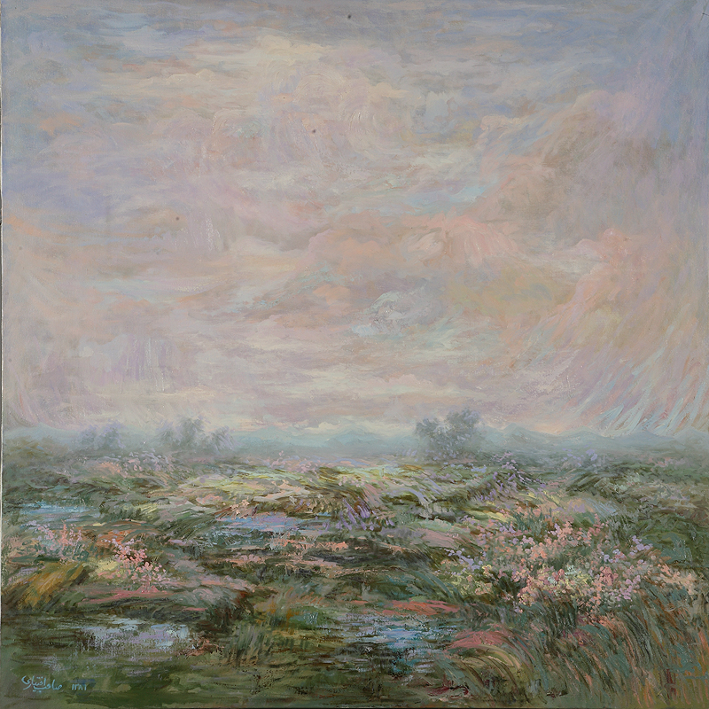 رنگهایی که شاید بر طبق واقعیت نقاشی نشده باشد. ترکیب بندهایی که ما را به یاد عالم مثال گونه از طبیعت میاندازد، با خط افقهایی که ما را تا ژرفایی تابلو میبرد.گاهی رنگها با اختلاف سایه و روشن شدید، نقاشی میشوند و زمانی پرده به پرده خاکستریهای رنگی ترکیبی جذاب از رویا را به هم میبافند.