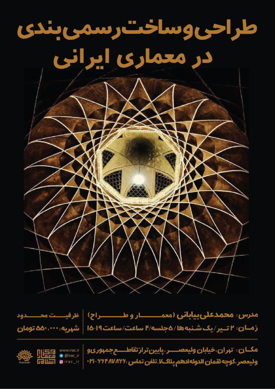 مرکز معماری اسلامی حوزه هنری کارگاه «طراحی و ساخت رسمی‌بندی در معماری ایرانی» را با مدرسی محمدعلی بیابانی برگزار می‌کند.