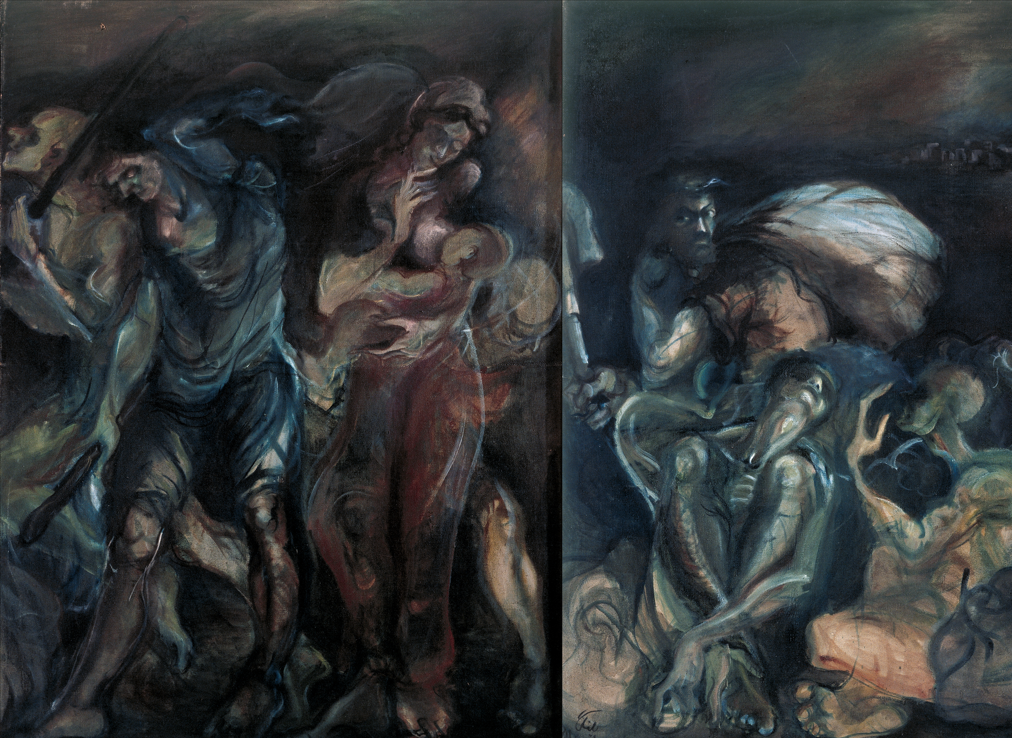 مرثیه، ناصر پلنگی، رنگ و روغن روی بوم، 200 × 300، 1361