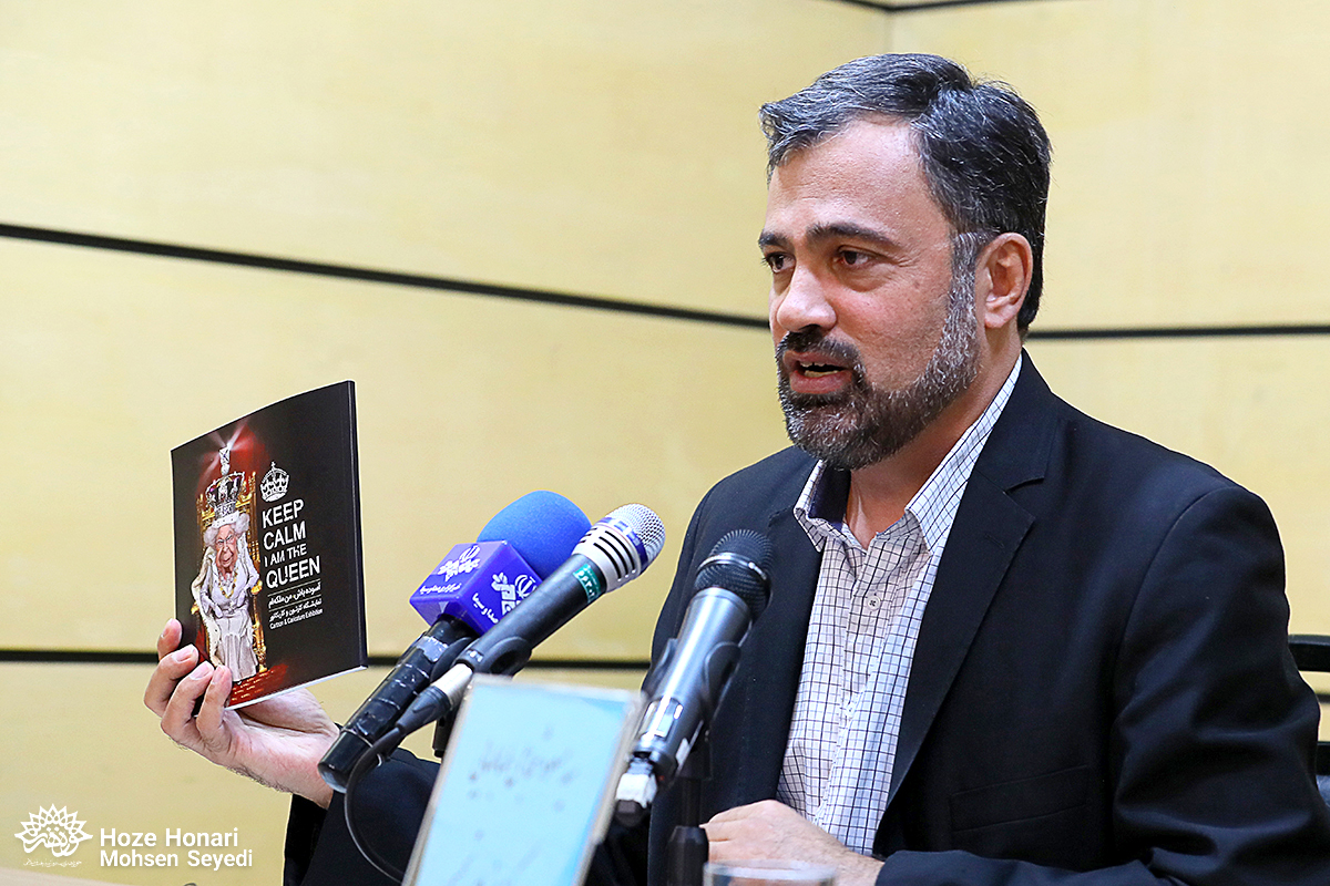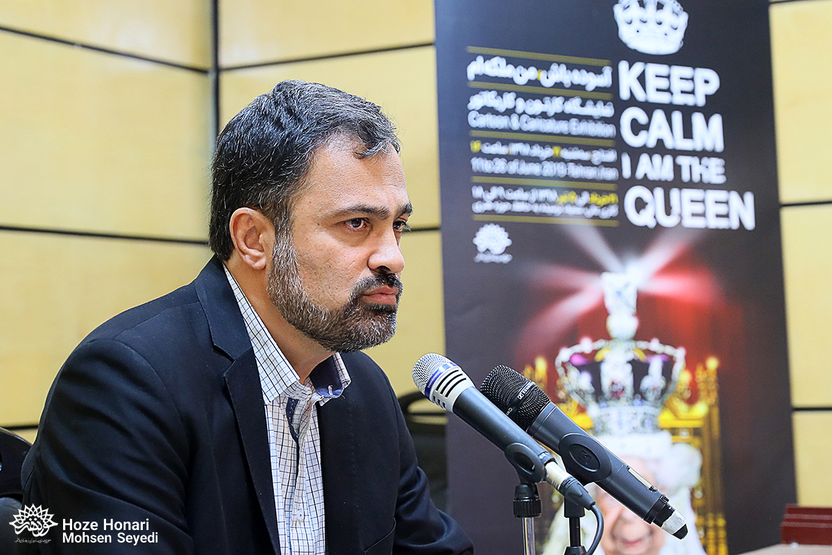 مدیر مرکز هنرهای تجسمی در ادامه نشست خبری تاکید کرد: 17 هنرمند انقلابی ظرف چند روز نزدیک 40 اثر را از سراسر ایران برای ما ارسال کردند و ما موفق شدیم در تاریخ 21 خردادماه این نمایشگاه را دایر کرده و کتاب این نمایشگاه را نیز چاپ کنیم و در اختیار رسانهها قرار دهیم. من از طریق توئیتر، سفیر انگلیس را نیز به این نمایشگاه دعوت کرده و چند نسخته از کتاب و دی وی دی کاریکاتور و کارتونهای این نمایشگاه را نیز برای سفارت ارسال خواهیم کرد.