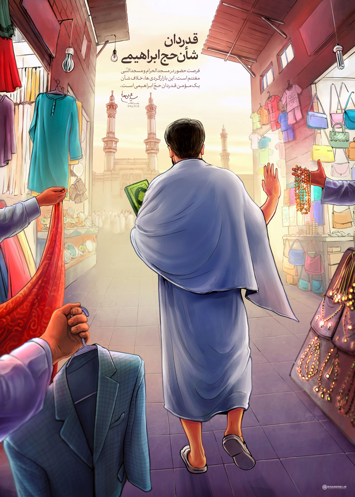 به گزارش روابط عمومی مرکز تجسمی حوزه هنری، حضرت آیتالله خامنهای 12 تیرماه 98 در سخنانی فرمودند: «فرصت حضور در مسجدالحرام و مسجدالنّبی مغتنم است. این بازارگردیها، خلاف شأن یک مؤمن قدردان حجّ ابراهیمی است.»