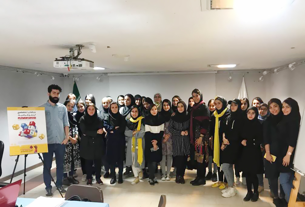 حوزه هنری استان البرز به ما پیشنهاد داد که یک ورک شاپ در فضای کاری اینفوگرایک در این زمینه برگزار کنیم وقتی که این فراخوان را در دانشگاه اعلام کردیم، هنرجویان در دانشگاه چندان استقبال نکردند به دلیل اینکه با این که اینفوگرافیک از شاخه‌های گرافیک است ولی در بین هنرجویان شناخت چندانی درباره آن وجود ندارد و مثلا اگر فراخوان برای پوستر اعلام می‌شد قضیه فرق می‌کرد و در مجموع هنرجویان خیلی ارتباط برقرار نکردند و من با کمک خانم اسلام‌دوست (مدیرگروه رشته گرافیک دانشگاه رسام استان البرز) با مطرح کردن و آشنا کردن هنرجویان در کلاس‌هایمان، آنها را تشویق و ترغیب به کار کردن در این فضا کردیم.