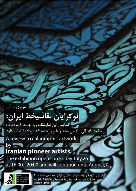 به گزارش روابط عمومی مرکز تجسمی حوزه هنری به نقل از ایسنا ، این نمایشگاه که تلاش دارد با گردآوری آثاری در حوزه نقاشیخط مروری بر آثار نوگرایان این حوزه داشته باشد، روز جمعه چهارم مرداد ماه از ساعت ۱۶ الی ۲۰ افتتاح میشود و تا تاریخ ۱۶ مرداد ماه نیز ادامه دارد.
