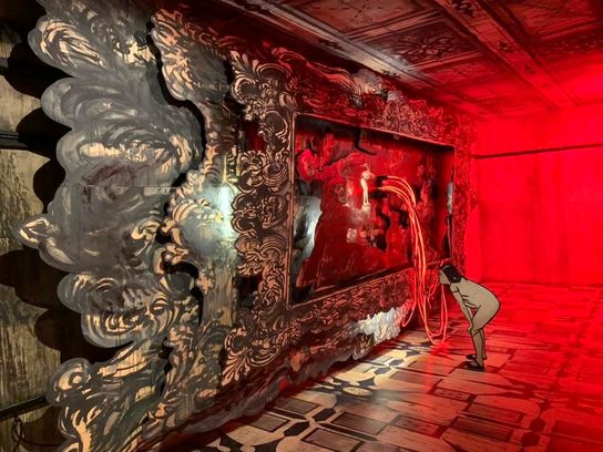 این اینستالیشن مروری بر داشته‌های فرهنگی و هنری کشور روسیه دارد. یک نقاشی از رامبراند که شاهکار موزه‌ هرمیتاژ روسیه است، موضوع این نمایشگاه شده؛ اما محور اصلی این اینستالیشن اثر کارگردان به نام الکساندر سوکوروف است که به صورت هم‎زمان نشان‌دهنده‎ تالارهای مشهور موزه هرمیتاژ و محل کار یک هنرمند هستند. در این اثر پنجره‌ها رو به دنیایی مملو از جنگ و هیاهو است که زندگی مدرن را احاطه کرده است.