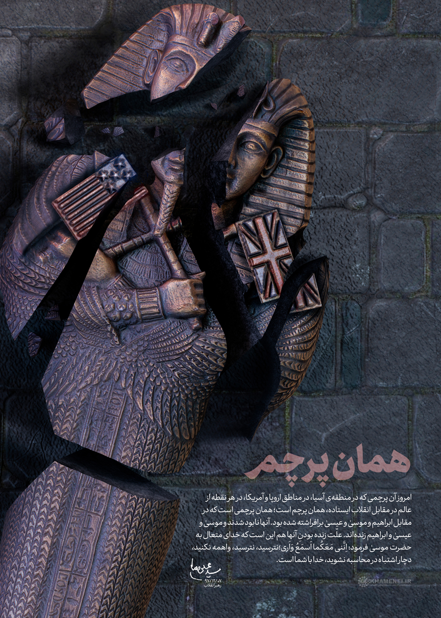 به گزارش روابط عمومی مرکز تجسمی حوزه هنری، حضرت آیت‌الله خامنه‌ای در بخشی از سخنرانی خود در هفتم اسفندماه 97 فرمودند: «پرچمی که در مقابل انقلاب ایستاده، همان پرچمی است که در مقابل ابراهیم، موسی و عیسی برافراشته بود. آنها نابود شدند و موسی، عیسی و ابراهیم زنده‌اند. علّت این است که خدای متعال به حضرت موسی فرمود: نترسید، دچار اشتباه در محاسبه نشوید، خدا با شما است، اِنَّنی مَعَکُما.»