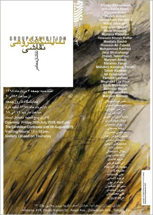 این نمایشگاه گروهی با آثاری از علیرضا آدمبکان، ابوسعید اسدی، نازنین اعوانی، ژاله اکبری، ثمیلا امیرابراهیمی، میلاد جهانگیری، داریوش حسینی، رضا حسینی، مرتضی خسروی، حسین خوش رفتار، مصطفی دشتی، حسینعلی ذابحی، محمد راشد، جلال شبانگاهی، ژاله طالبپور، مریم عابدی، ابراهیم فرجی، مهدیه کواکب پناه، طلیعه کامران، علی گلستانه، فریده لاشایی، مقداد لرپور، سیراک ملکنیان، بهروز مجیدی، علی معتمدیان و مریم نوروزی روز جمعه ۴ مرداد ساعت ۱۶ تا ۲۰ افتتاح میشود و تا ۱۱ مرداد ادامه خواهد داشت.