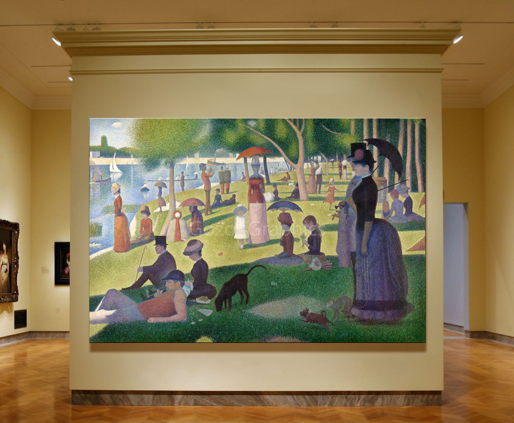 گراند ژات، ژرژ سورا، رنگ و روغن روی بوم، 304×205 سانتیمتر، 1884 تا 1886، مؤسسه هنر شیکاگو