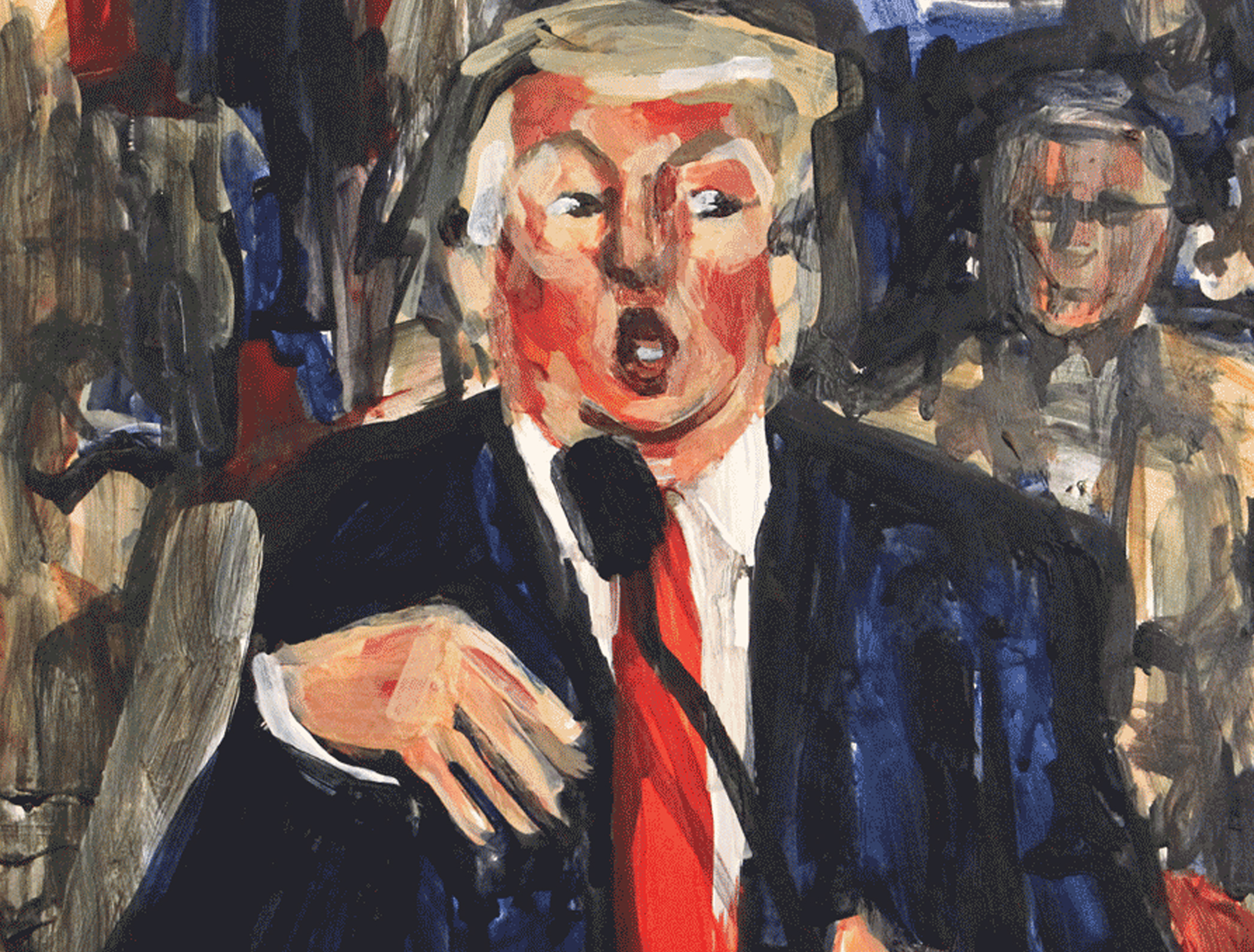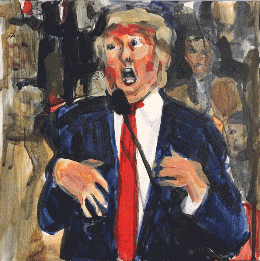 این سه گانه عمدا خیلی سریع نقاشی و رنگ آمیزی شده و حرکات اغراق شده را در چهره ترامپ نشان می دهد که نشان دهنده بی خیالی و بی پروایی اوست. سود حاصل از فروش این تابلوها به جامعه معلولان آمریکا تعلق گرفت.