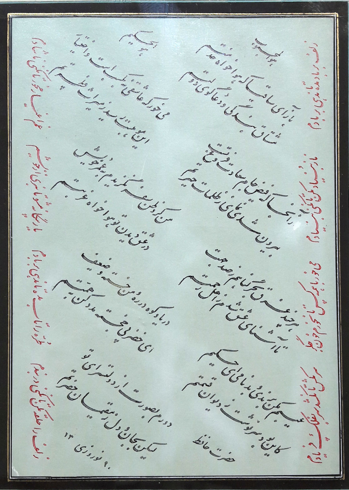 ضمنا بنده سابقهای در خوشنویسی با خودکار هم دارم و چند سالی هست که این رشته از خط را تدریس می کنم البته به صورت خیلی تخصصی و شاگردان زیادی هم تربیت کردهام که تعدادی از آنها خودشان الان در حال تدریس هستند.