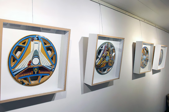 غلامی ادامه داد: ایده استفاده از قالپاق به شکل ناگهانی با دیدن آثار هنرمندی که روی مواد دور ریختنی کار میکرد در من شکل گرفت. یکی از کارهای او روی قالپاق ماشین انجام شده بود و من هم احساس کردم میتوانم میان این قالپاقها بهعنوان نماینده صنعت با نگارگری ایرانی ارتباط خوبی ایجاد کنم.