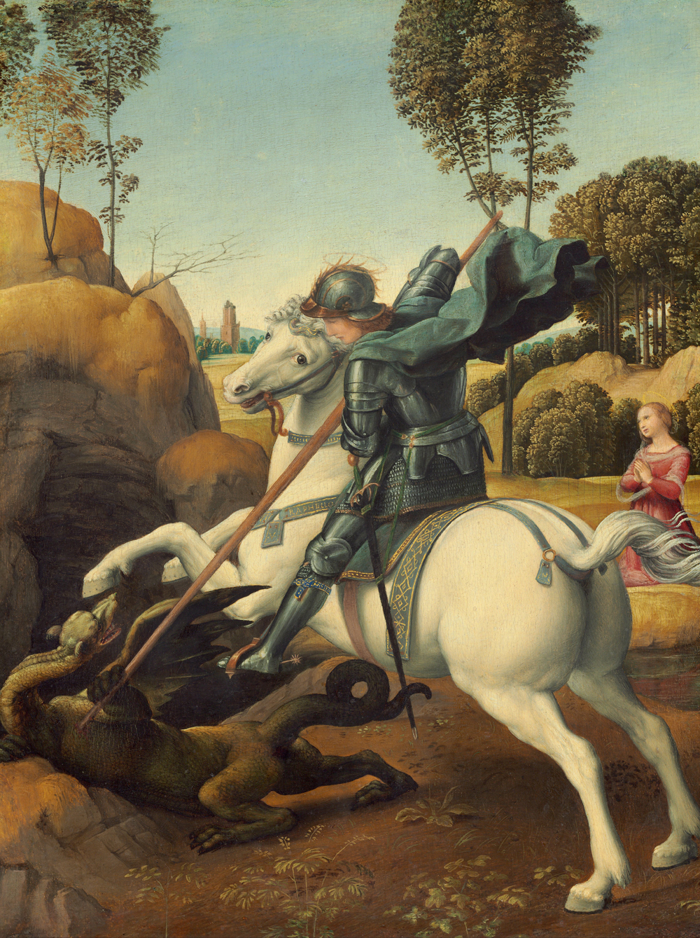 کمتر ممکن است یک پرده نقاشی از لحاظ استحکام ترکیب و طرح اجزا به پایه این اثر "رافائل"، با عنوان "سن ژرژ و اژدها" برسد.