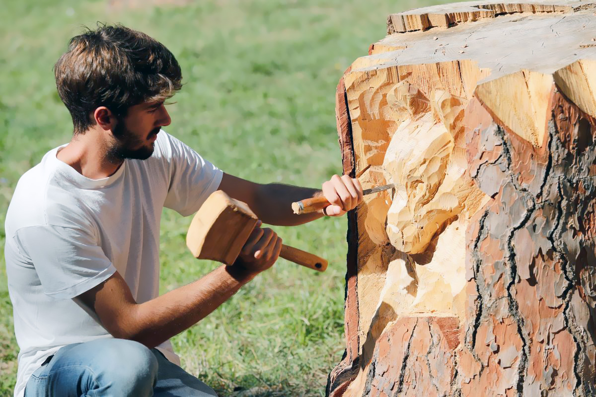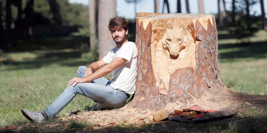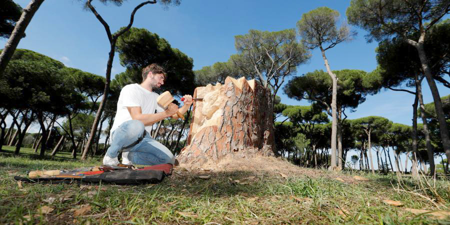 «آندریا گاندینی» مجسمه‌ساز ۲۲ ساله‌ی ایتالیایی با تبدیل کردن کنده درختان سطح شهر به یک اثر هنری به شهرت رسیده است.