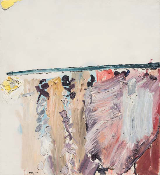 دراین اثر، یکتایی تا جای ممکن از شیء آشنا فاصله گرفته و به مرزهای انتزاع ناب نزدیک میشود. کلیت بوم به دو بخش تقسیم شده؛ بخش بالا در رنگی تخت و روشن، که شاخصه نقاشیهای یکتایی است، غوطه میخورد و بخش پایین در ضرباهنگ نابسامانی از تاشهای ضخیم رنگ پنهان میشود.