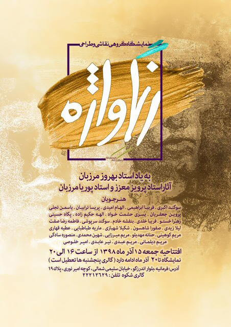 نمایشگاه گروهی طراحی و نقاشی «رنگ‌واژه‌»،‌ به یاد بهروز مرزبان و با آثاری از پرویز معزز و پوریا مرزبان برگزار می‌شود.