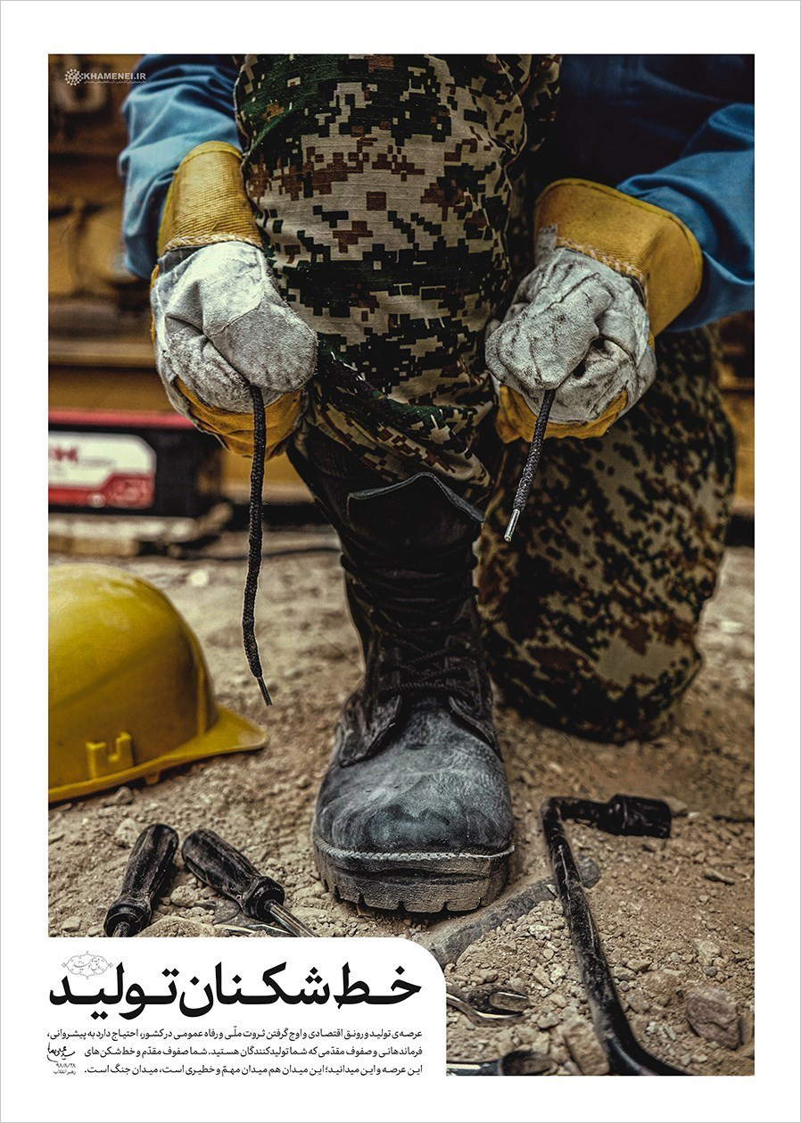 به گزارش روابط عمومی مرکز تجسمی حوزه هنری به نقل از خبرنگار تسنیم، پایگاه اطلاعرسانی رهبر فرزانه انقلاب مجموعه پوستر تازه خود را با عنوان «خطشکنان تولید» منتشر کرد.