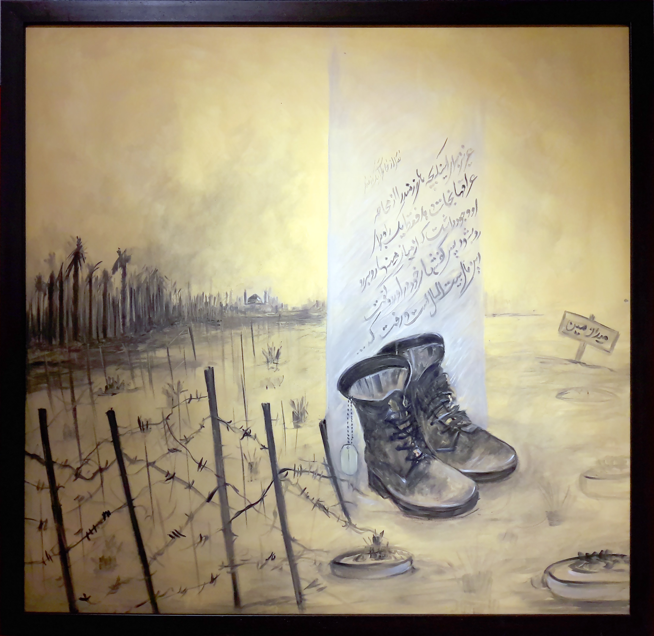 به گزارش روابط عمومی مرکز تجسمی حوزه هنری، علیمحمد شیخی از هنرمندان شرکت کننده در نمایشگاه هنرهای تجسمی «بسیجی» در حوزه هنری اظهار کرد: تابلو «پوتین رزمنده» برگرفته از داستان واقعی یکی از رزمندگان دفاع مقدس است که قبل از عملیات پاکسازی منطقهای از مین، پوتینهای نو خود را که از تدارکات جبهه تحویل گرفته بود باز کرده و گفت «به بیتالمال بازگردد، من که به روی مین میروم». این رفتار رزمنده من را بسیار تحت تاثیر قرار داد و منشاء طراحی این تابلو شد.