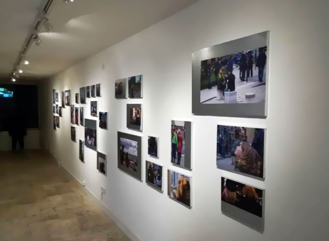 در جایی از نمایشگاه مواجههی مستقیم مخاطب با عکس وجود دارد و در دیوار مقابل همان عکسها بریده شده و در قابهای کوچک دوباره چیده شدهاند؛ مخاطب میتواند در فضای محدودی که برایش تعیین شده آنها را جابجایی کرده و چیدمان جدیدی ایجاد کند. به این ترتیب تعامل مخاطب در اثر میتواند به مفهومی جدید فارغ از اثر و هنرمند منتهی شود.