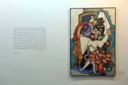 به گزارش روابط عمومی مرکز تجسمی حوزه هنری به نقل از هنرآنلاین، در نمایشگاه حاضر نقاشی‌هایی زیبا از دو دوره آثار گارنیگ، کارهای مشبک و طبیعت بی‌جان،  با تکنیک ترکیب مواد روی چوب ارائه شده که طی سال‌های ۱۳۵۴ تا ۱۳۶۹ خلق شده‌اند و حتی از منظر بازخوانی تاریخ شفاهی هنر ایران حائز اهمیت هستند.