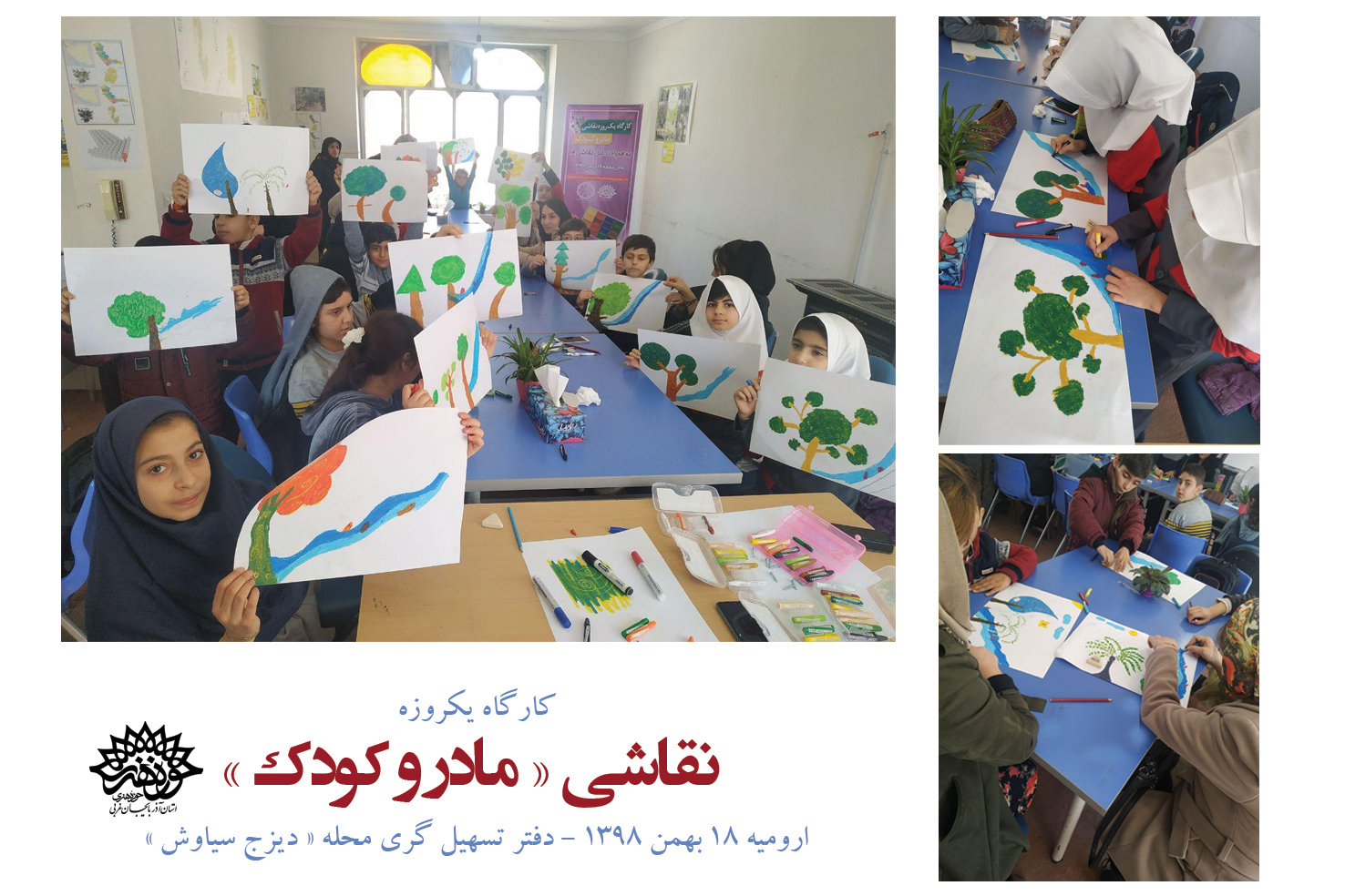« دفترهای تسهیلگری و توسعه محلات » زیر نظر استانداری آذربایجان غربی در هشت  نقطه از مناطق حاشیه نشین و کم برخوردار شهرستان ارومیه و با هدف « کاهش آسیب‌های اجتماعی»  ایجاد شده است که در همین راستا بر اساس توافقات صورت گرفته ما بین حوزه هنری آذربایجان غربی و دفتر امور اجتماعی و فرهنگی استانداری آذربایجان غربی « کارگاه نقاشی مادر و کودک » در محل‌های دیزج سیاوش و کوی آذربایجان ارومیه برگزار شد.